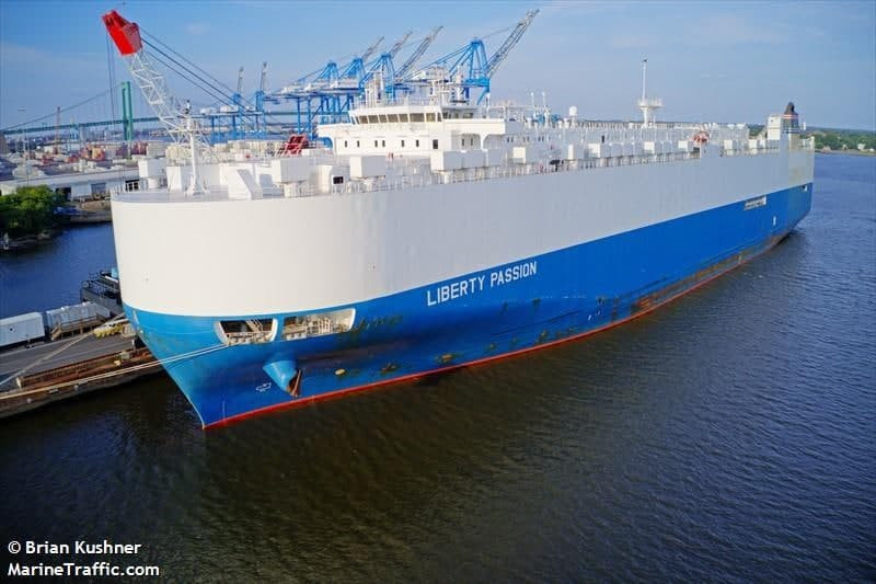 Судно Liberty Passion предназначено для транспортировки техники, оно построено в 2017 году и ходит под флагом США. Его грузоподъемность составляет 20,3 тысячи тонн, текущая осадка - 10 метров. Длина судна составляет 199,98 метра, а ширина - 32,3 метра.
