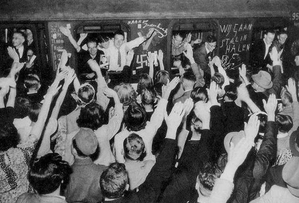 Добровольцы из Нидерландов отправляются на Восточный фронт под радостные крики обывателей