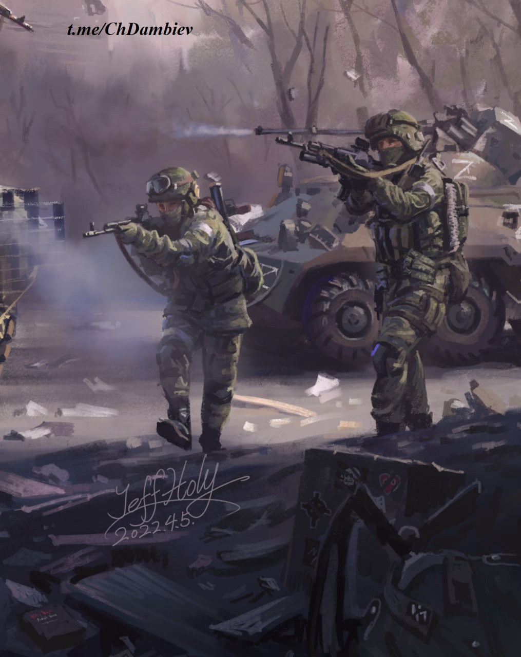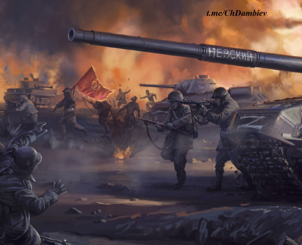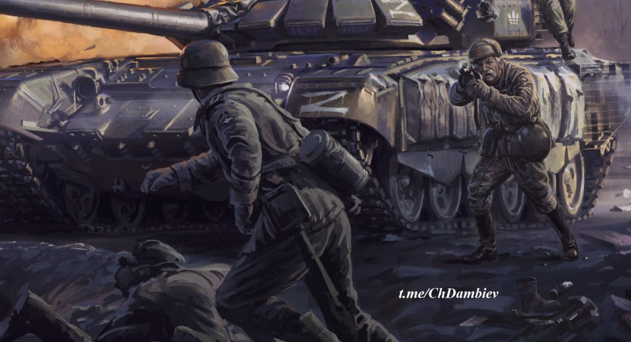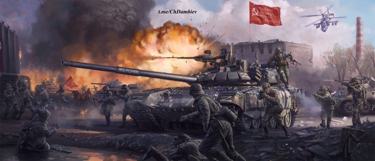 Китайский художник-иллюстратор под ником JeffHoly нарисовал картину "Война с нацистами 1941-2022". На картине против фашистов в едином строю сражаются воины эпохи Великой отечественной и нынешней операции на Украине.