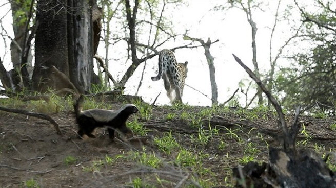 В феврале 2019 года леопард в парке Крюгера решил полакомиться детенышем медоеда. Хищник незаметно подобрался к своей добыче и напал на нее, но тут на шум явилась мать малыша. С грозным ревом она бросилась на леопарда, и тот сразу же сбежал – связываться с разъяренным медоедом не хочется никому.