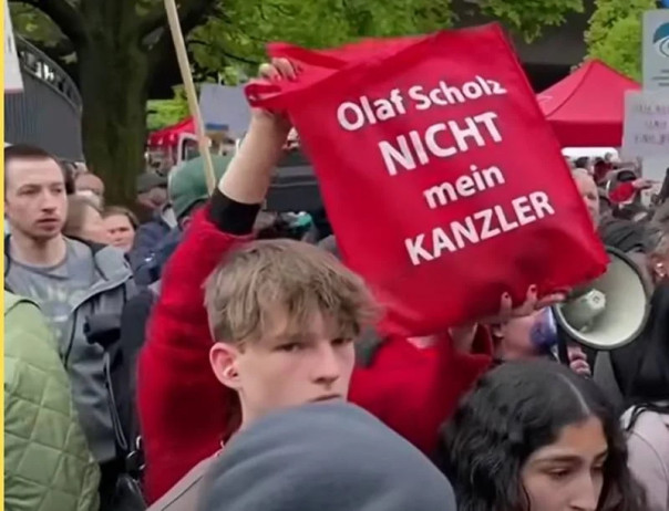 Важно отметить, что эта крикливая речь немецкого канцлера произносилась на фоне массовой акции протеста. Люди протестовали против отправки Германией оружия на Украину, отмечая, что такая отправка говорит о подливании Берлином масла в огонь вооружённого конфликта.