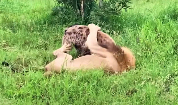 Но иногда те, кто должен был стать жертвой, могут выстоять в поединке против гривастого хищника, и свидетелем такой сцены стал экскурсовод Дин Робинсон. Он снял, как гиена отчаянно цепляется за жизнь в смертельных объятиях льва. Действие происходит в частном заповеднике Sabi Sands Game Reserve, который входит в нацпарк Крюгера в ЮАР.