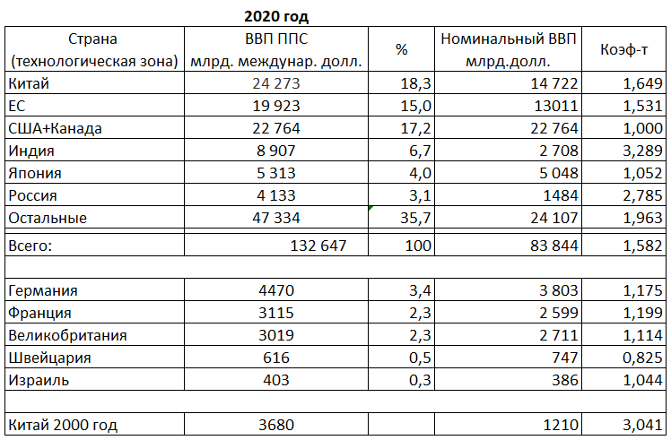 Обратите внимание еще на то, что Китай двадцать лет назад имел коэффициент 3,04 (китаец работал за миску риса в день)- теперь уже 1,65, то есть уровень их международной эксплуатации упал с тех пор почти в два раза.