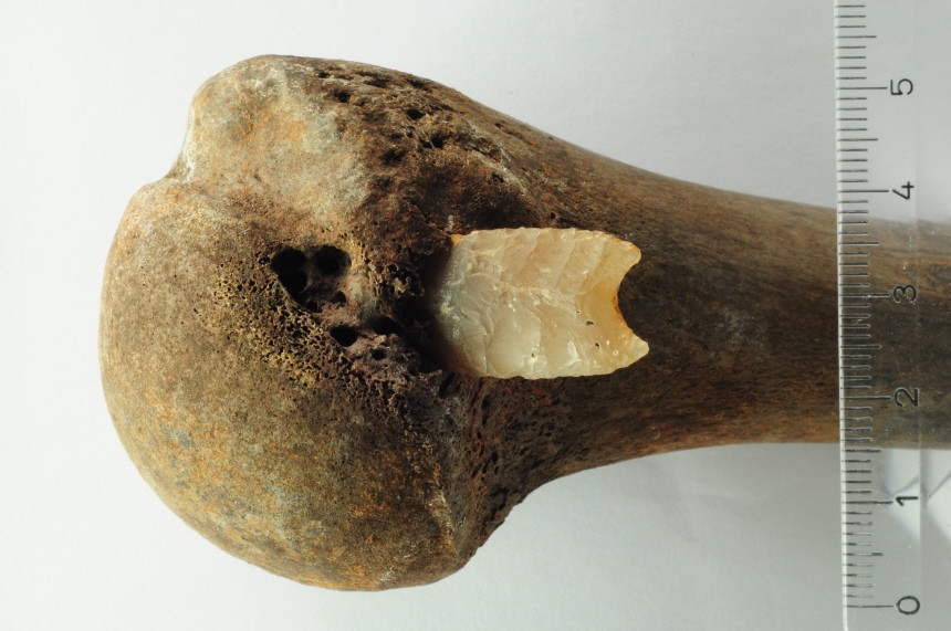 Интересно, что к более раннему периоду относятся находки как минимум 10 костей животных с застрявшими наконечниками стрел, но среди них вовсе нет костей, принадлежащих людям.