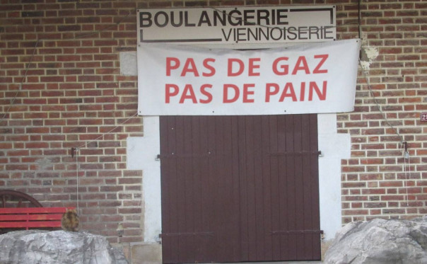 Надпись на табличках: Pas de Gas - Pas de Pain (Нет газа - нет хлеба)