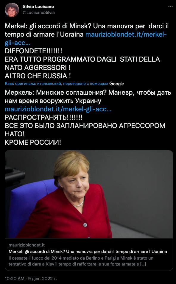 По словам фрау Меркель, в 2015 году Украина была слишком слаба и победить её на поле боя было крайне просто. А страны НАТО тогда бы не могли оказывать столько помощи. Поэтому с помощью Минских соглашений Запад заморозил конфликт, чтобы дать Украине возможность перевооружиться. Источник