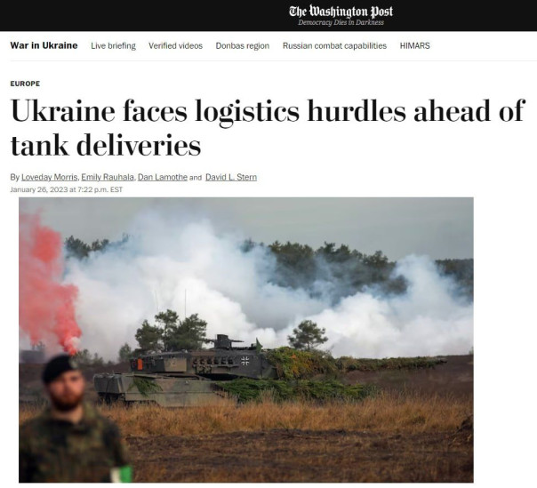 Прежде всего, вскрылся обман госсекретаря Блинкена относительно «долгосрочных потребностей». Уже несколько таблоидов опубликовали слова экспертов о том, что обещания США насчёт танков были сделаны с единственной целью: чтобы Германия первая поставила свои «Леопарды», а Вашингтон торопиться не будет. «Абрамсы», если появятся, то лишь в конце 2023 года, а то и в начале следующего.