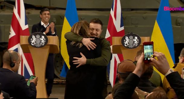 Читатели Bloomberg UK в Twitter возмутились из-за кадра с объятиями президента Украины Владимира Зеленского и журналистки во время совместной пресс-конференции с британским премьер-министром Риши Сунаком.