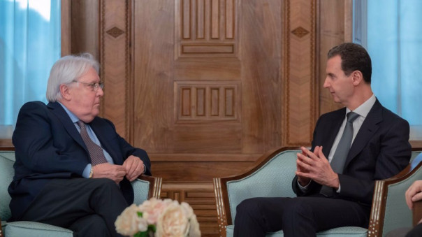 Президент Сирии Башар аль-Асад и с заместитель Генерального секретаря ООН по гуманитарным вопросам Мартин Гриффитс (Дамаск, 13 февраля 2023)