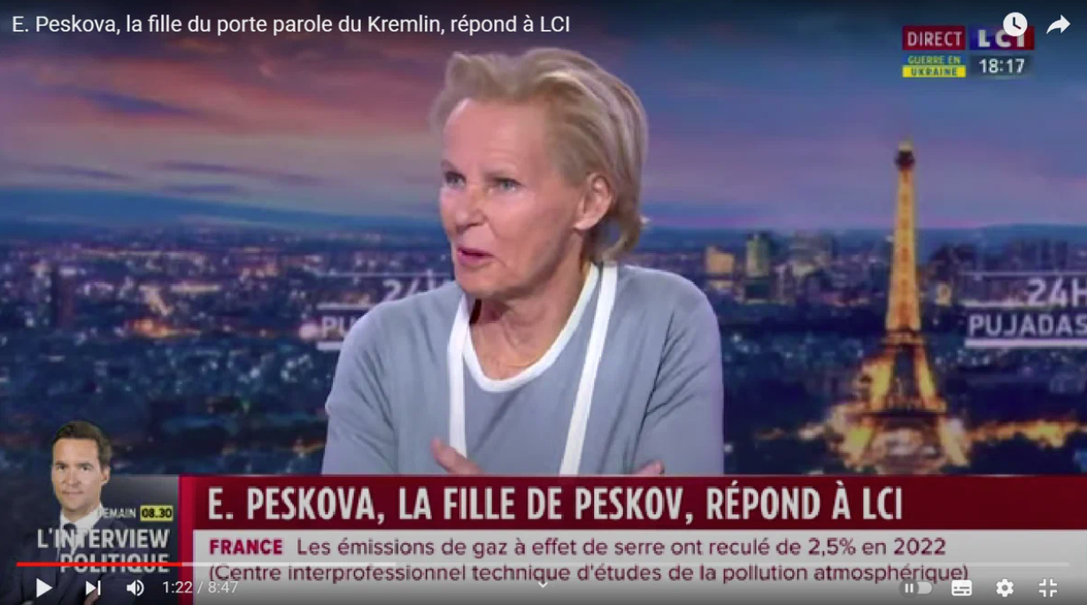 Е. Пескова (слева) и журналистка France Culture Кристин Окрен. Скриншот передачи с канала LCI в YouTube.