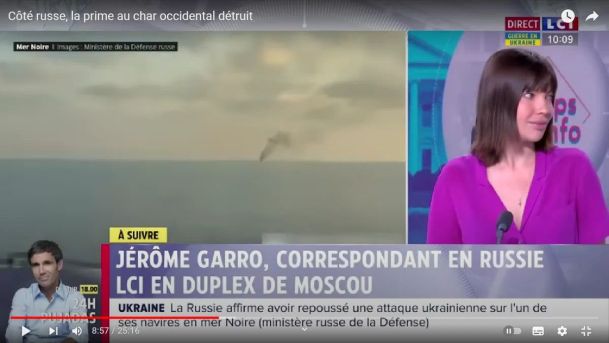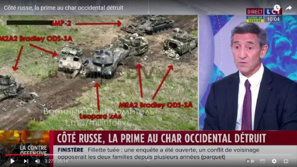 Вопрос ведущей Элизабет Мартишо : "О чем говорят кадры на экране, генерал? Это вообще нормально, что русские смогли уничтожить танки, это не говорит о слабости украинцев?"