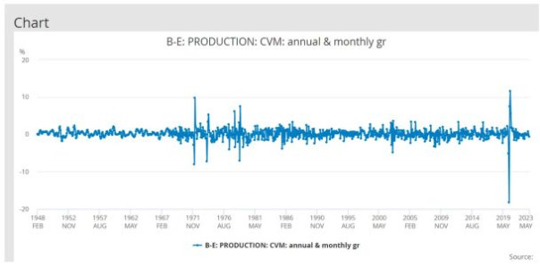 На этом фоне пандемийный рывок вниз в 2020 году смотрится весьма устрашающе — суть же в том, что после отскока вверх в 2021 началось нечто непредвиденное. Как оказалось, отсутствие общих границ с ЕС было определяющим для роста экономики — как только границы закрылись, так сразу накрылась и экономика. Спад в этом мае по сравнению с маем 2022 года -2,3%. Немного, но курочка по зернышку.
