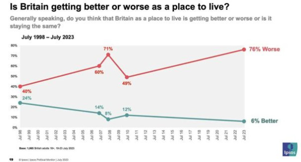 Не верят в «кризис Путина» и рядовые британцы. Так, только 6% британских респондентов все еще уверены, что страна меняется в лучшую сторону. Тогда как 76% придерживаются противоположной точки зрения. Это рекордный показатель пессимизма за всю историю наблюдений.