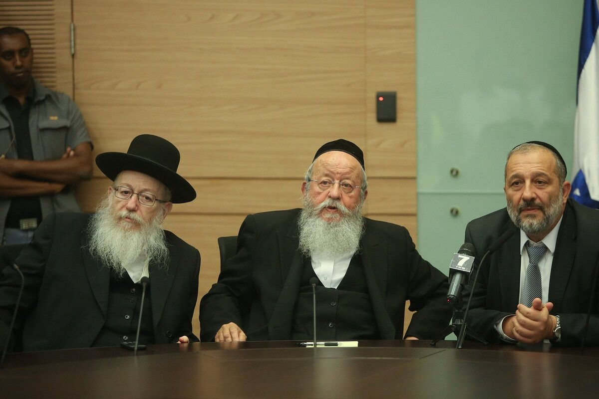 Ультраортодоксы из партий «ШАС» и «Яхадут ха-Тора» проводят экстренное заседание в Кнессете, 13 сентября 2017 года. Фото: Flash90