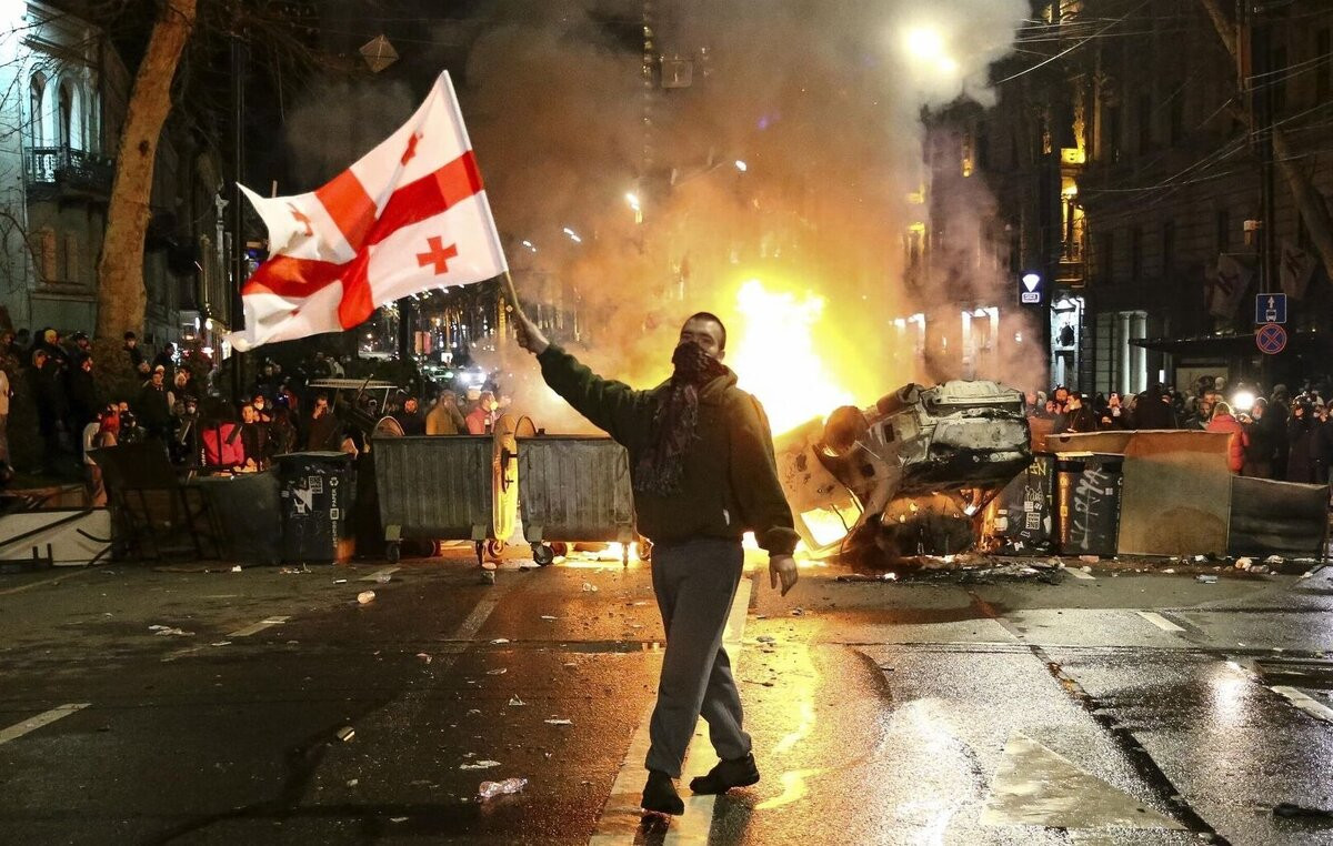 Участник акции протеста у здания парламента Грузии в центре Тбилиси. Фото: Zurab Tsertsvadze / AP Photo