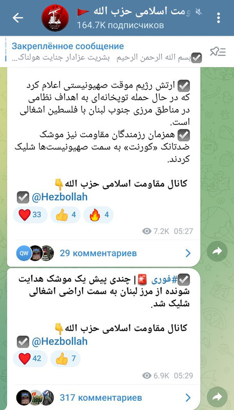 Канал "Хезболлы" сменил аватарку с обычного желтого цвета на красный. И красный флажок добавили. Красный у шиитов — цвет мести.