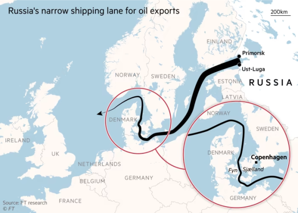 От 20 до 30 % своего морского экспорта нефти (или 1,5% мировых поставок) Россия отправляет через Датские проливы, так что любая попытка заблокировать эти поставки неминуемо привела бы не только к росту цен, но и спровоцировала бы конфронтацию, вплоть до военной. Видимо, осознав серьёзность ситуации, анонимные европейские дипломаты поспешили «дать заднюю», уверяя, что российские нефтяные танкеры не являются объектом предложения Еврокомиссии по ужесточению ограничения цен.