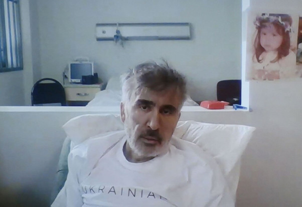 Михаил Саакашвили присутствует в суде по видеосвязи из клиники, 1 февраля 2023 года. Фото: Irakli Gedenidze / Reuters