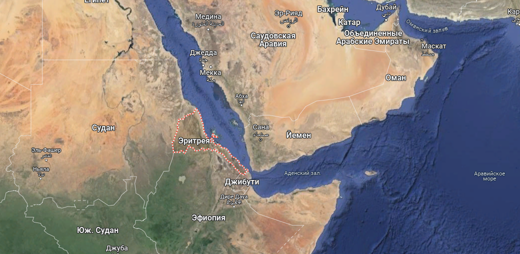 Последние недели гражданские разведки ряда западных и азиатских стран в закрытых и открытых источниках пишут, что наши уже начали заходить и в ближайшее время в Эритрее начнётся строительство пункта материально-технического обеспечения ВМФ России (как в Сирии). На карте ниже хорошо видно, что будущая база раскинется прямо напротив Йемена.