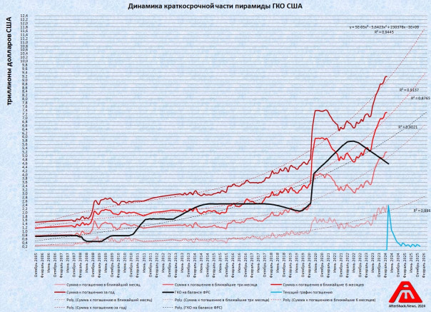 Текущее состояние бюджета и краткосрочной части пирамиды ГКО США, где в этом месяце зафиксированы новые рекорды: