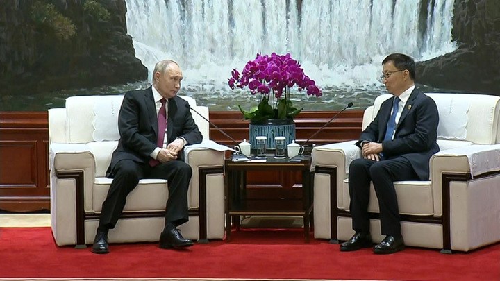 Президент России Владимир Путин, который находится с визитом в Китае, провел беседу с заместителем председателя КНР Хань Чжэном.