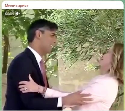 А вот премьер-министр Италии Джорджа Мелони демонстративно отстранялась от Сунака, который и её "попытался облобызать".