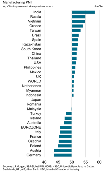 Производственная активность по странам мира в июне выглядела так: