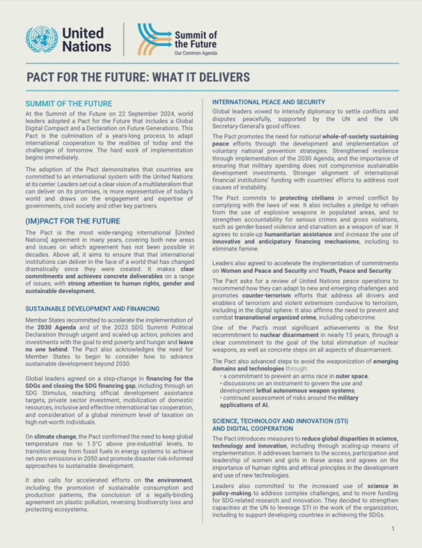 Предваряя его принятие, Генеральный секретарь ООН Антониу Гутерриш заявил, что речь идёт об «эпохальной декларации», обязывающей принять меры по улучшению мира для будущих поколений.