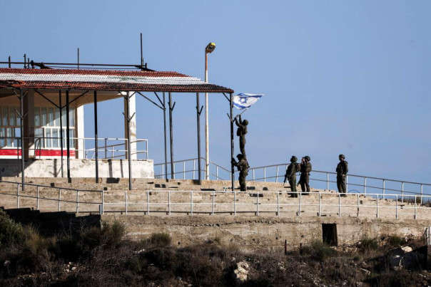 Израильские солдаты водружают израильское знамя в Сирии после свержения сирийского президента Башара Асада, вид из Мадждал-Шамса на Голанских высотах
