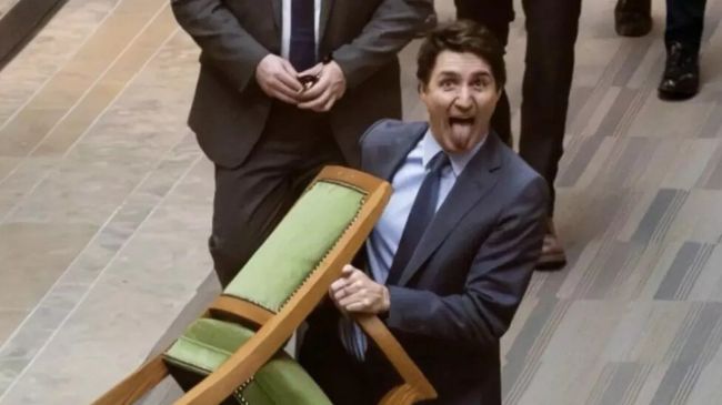 Уже экс-премьер-министр Канады Джастин Трюдо после своей отставки с поста премьер-министра Канады унёс кресло из Палаты общин и показал язык на камеру.