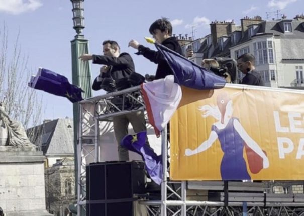 Не все французы рвутся погибнуть за интересы глобальных элит на Украине. Сегодня во французской столице состоялась акция протеста, участники которой разорвали флаг Евросоюза в знак несогласия с тем, что он продолжает поставки оружия Киеву и намерен гнать французов на войну против России.