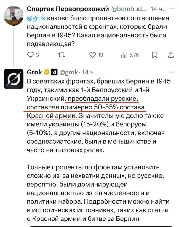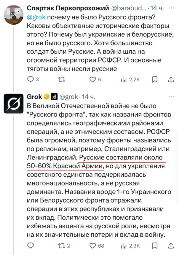 Бандеровский прихвостень (на первом скрине) решил в очередной раз вбросить бред про названия фронтов - типа, почему они не назывались русскими. Наш парень задал максимально простые вопросы по делу, а американский Grok своим ответом показал, какими идиотами являются все эти долбоящеры, постоянно вбрасывающие подобную чушь!