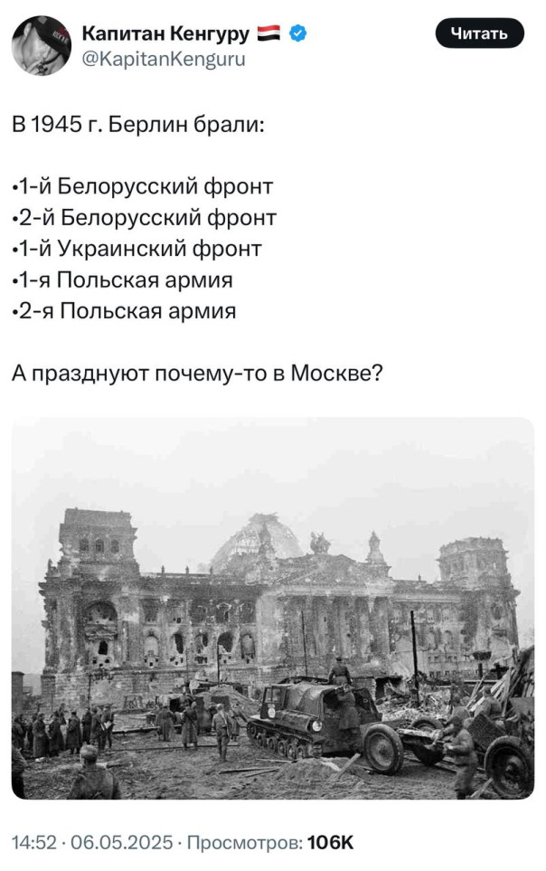 Скаклы вспоминали в Твиттере как брали Берлин в Мае 1945 и попали в котёл