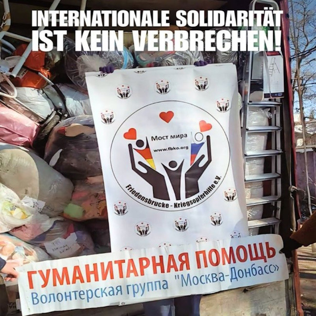 Буквально на днях стало известно, что Федеральная прокуратура Германии возбудила дело против гуманитарной организации Friedensbrücke («Мост Мира»), с 2014 года оказывавшей помощь мирному населению Донбасса. На имя главы организации Лианы Килинч выдан ордер на арест. Два дня назад в офисе Friedensbrücke были произведены обыски и выемка документов.