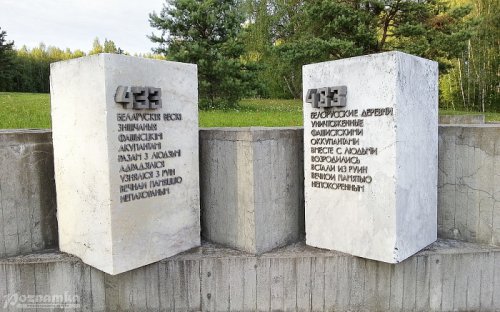 И рядом - «деревья жизни», на ветвях которых названия 433 белорусских сел, уничтоженных нацистами, но восстановленных после войны.