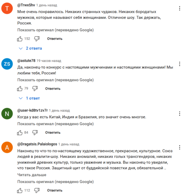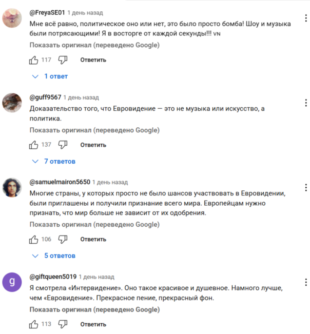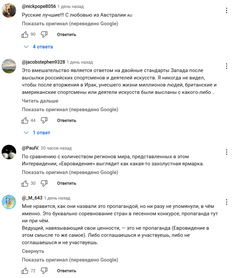 Комментарии к этому видео весьма характерны (переведено автоматом):
