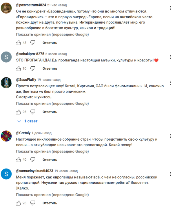 На днях в России состоялся конкурс «Интервидение».