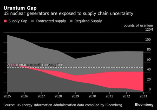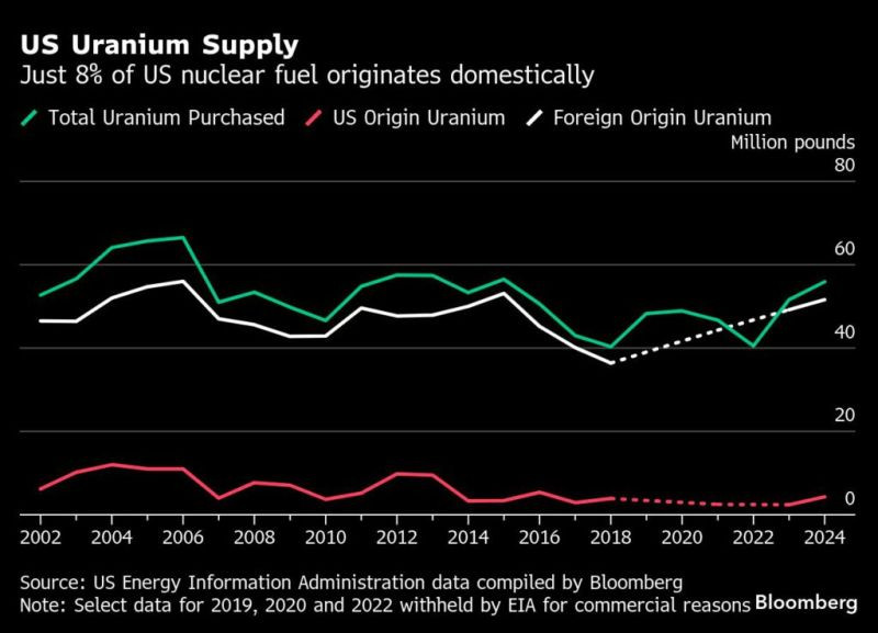 По данным агентства Bloomberg, в настоящее время Россия поставляет около четверти обогащенного урана, необходимого для 94 американских ядерных реакторов, которые генерируют примерно пятую часть электроэнергии в США. Быстрое прекращение этих поставок, по экспертным оценкам, может поставить под угрозу около 5% выработки электроэнергии в стране.