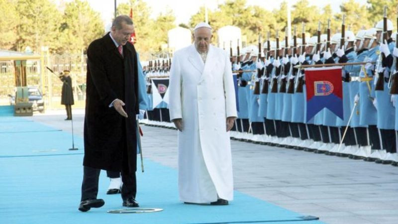 Но при этом ни слова, например, о повторном превращении в Стамбуле одной из важнейших христианских святынь – Собора Святой Софии в мечеть. Вместо этого понтифик запланировал посетить историческую мечеть Султана Ахмеда («Голубую»). Эрдоган же заявил: «Мы будем работать вместе с Ватиканом против любого нарушения священного статуса Восточного Иерусалима». Статус Святой Софии, видимо, в счет не входит.