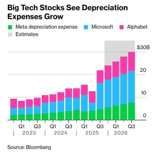 Трехлетний рост индекса S&P 500 на 30 триллионов долларов в значительной степени обеспечен крупнейшими мировыми технологическими компаниями, такими как Alphabet Inc. и Microsoft Corp., а также фирмами, получающими выгоду от расходов на инфраструктуру искусственного интеллекта, такими как производители чипов Nvidia и Broadcom Inc., и поставщиками электроэнергии, такими как Constellation Energy Corp. Если они перестанут расти, то фондовые индексы последуют их примеру.