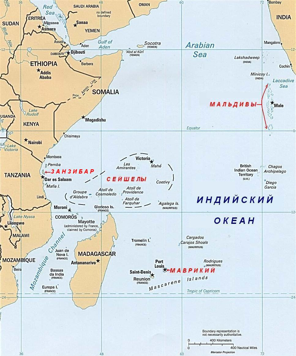 Последнее вполне относится и к упомянутому С. Лавровым острову Майотта (почти 380 кв. км), отделённому Францией («Заморская территория») от Комор с 1977 года, на который, как и на близлежащие о-ва Гейзер, высказывает вполне обоснованные претензии Союз Коморских островов (СКО).