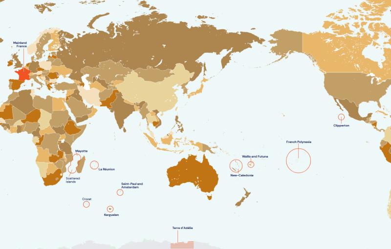 Территориальный и ресурсный факторы повышают геополитическую и хозяйственную роль Франции с её колониальными осколками в обширном регионе, что иллюстрируется, к примеру, третьим местом Франции в мире (после КНР и Индонезии) по объемам имеющихся и осваиваемых рыбных ресурсов...
