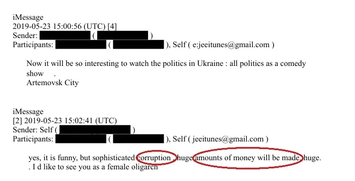 Одно из писем датировано 10 июня 2019 г. В нем обсуждается график встреч высокопоставленного европейского чиновника. Собеседник Эпштейна с затертым именем в заголовке, пишет: «Я 20-го на Балканах… Могу сделать обед в воскресенье 16-го. Кстати, в этот четверг посещаю Зеленского».