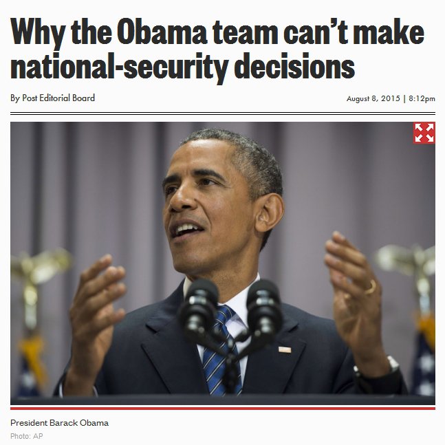 По мнению авторов статьи, Барак Обама привык игнорировать мнение военных во внешнеполитических вопросах, чем в Пентагоне крайне недовольны. Так, генерал Рэймонд Одиерно заявил, что усиление на Ближнем Востоке "Исламского государства" в период правления Обамы — "разочаровывающее зрелище".