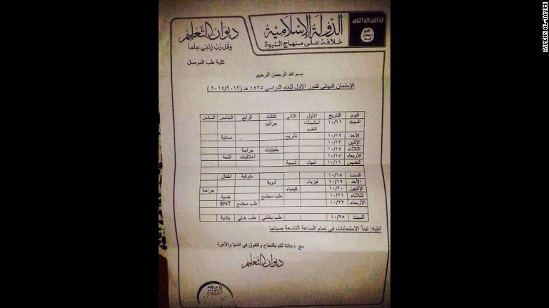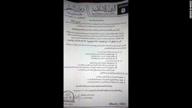 Документ об открытии Университета в Мосуле. Кафедры философии и археологии открытию не подлежат. В документе требуется заменять везде упоминания об "Республике Ирак" на "Исламское государство".