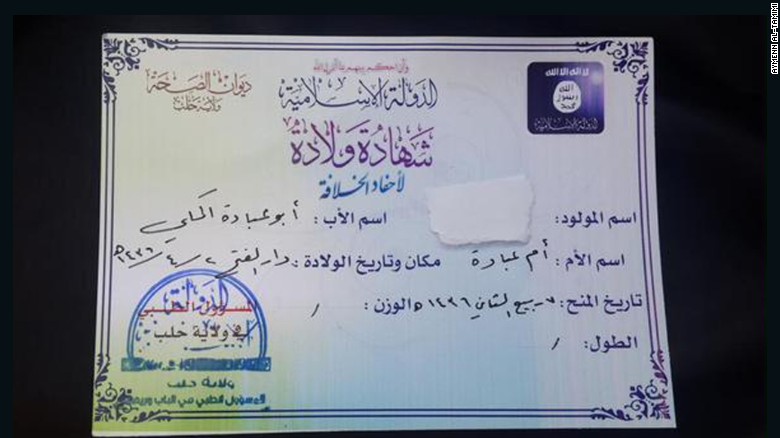 Свидетельство о рождении в захваченной Халифатом провинции или вилайяте.