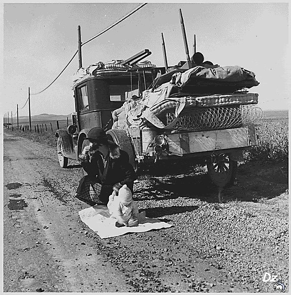 Каждый шестой американский фермер попал под каток голодомора. Люди шли в никуда, лишенные земли, денег, своего родного дома, имущества — в охваченную массовой безработицей голодом и повальным бандитизмом неизвестность.