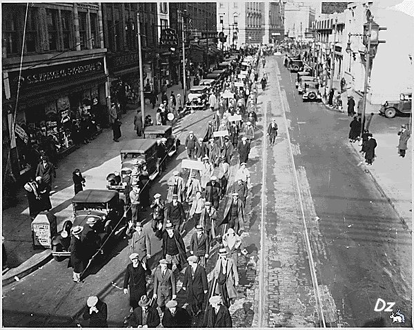 Начало тридцатых — настоящая гуманитарная катастрофа в истории США. В 1932 году число безработных достигло отметки 12,5 млн. человек. Это при всём населении Штатов — включая детей и стариков — в 125 миллионов. Пик пришелся на начало 1933 года, когда безработных в Америке было уже до 17 миллионов – с членами семей это примерно полностью безработная Франция или Британия !
