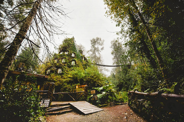Интересно, что внутри отеля все выполнено из дерева так, что отель напоминает лесной домик волшебника. Кроме номеров и ресторана чилийской кухни, внутри также есть SPA. Отель был построен как частная вилла, хозяева использовали ее как дачу и место сбора семьи и друзей для прогулки по джунглям и охоты. Сейчас же постояльцы приезжают, чтобы прогуляться по джунглям с гидом и посетить водопады недалеко от отеля.