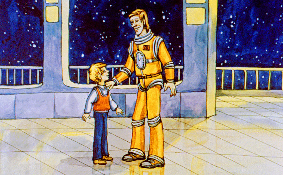 Кадр из несостоявшегося мультфильма «Сто лет тому вперёд». Коля (на картинке он слева) должен был быть второклассником, хотя в повести он, как и в фильме, из 6-го «Б».